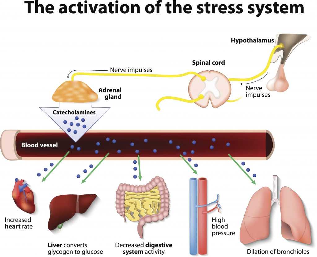 Чтобы контролировать гормон стресса, важна активизация парасимпатической нервной системы. Для этого нужно отдохнуть и пережить ситуацию, это противоположная реакция работы адреналина. Действие адреналина на организм заключается в:
