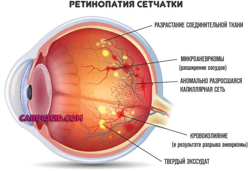 Ранее обнаруживаются изменения на глазном дне, со стороны кардиальных структур, но сам пациент их не замечает.