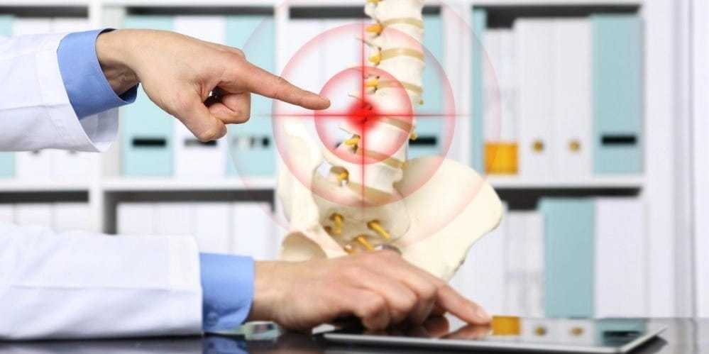 Ноющая или тянущая боль в крестце может свидетельствовать о смещении позвонков, называемого спондилолистезом.