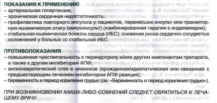 Как видно из перечисленных показаний про Престариум, от чего помогает медикаментозное средство, таблетки могут назначаться не только для предотвращения кризов и удержания давления на постоянном уровне, но и для профилактики ишемических нарушений в неврологии и кардиологии.