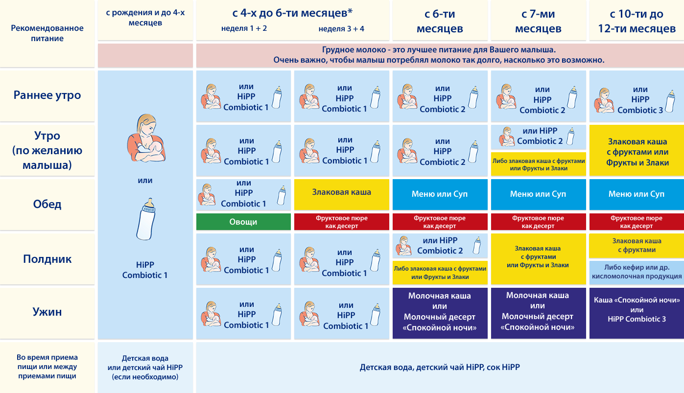 Первый прикорм при грудном вскармливании в 3 месяца (схема):