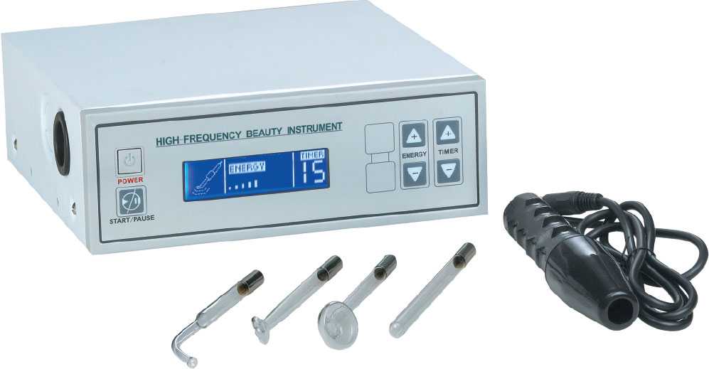 Во время процедуры на тело пациента воздействует переменный синусоидальный ток высокого напряжения. Передает ток к тканям стеклянный электрод.