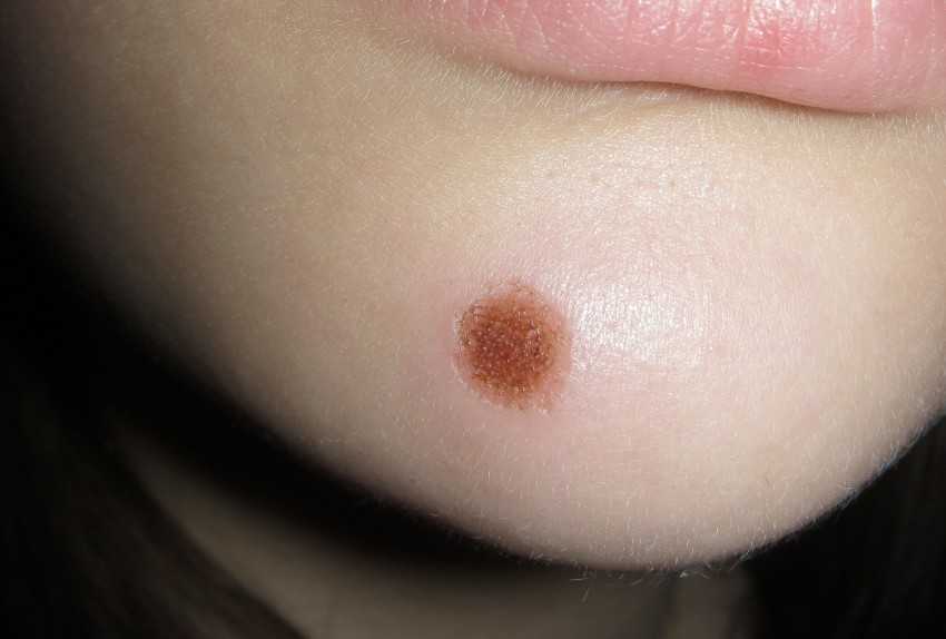 - Лентиго – плоские родимые пятна на коже, которые немного возвышаются на кожных покровах (или не возвышаются). Имеют коричневый оттенок, возможны и черные пятна, размеры до 3,5 см. Он может быть как врожденным, так и появится внезапно. Врачи относят его к опасным видам, поскольку перерождается очень быстро. Появляются в основном на ладонях, подошвах, шее и лице, что подвергает такие участки кожи большему воздействию внешних факторов;