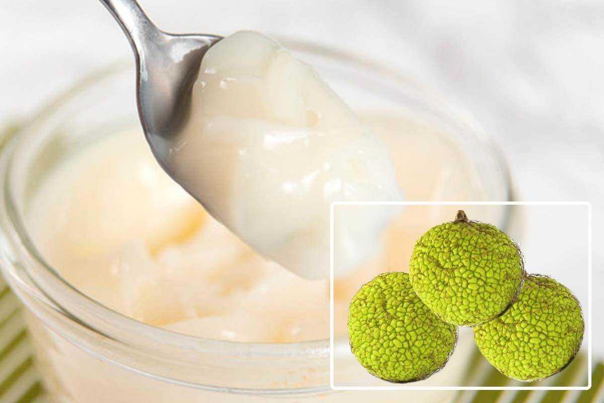 Условно-ядовитый плод маклюры напоминает крупное яблоко или апельсин. Но цвет у него — нежно-зеленый с легким оранжевым оттенком, а кожица морщинистая. Если плод разрезать, то выделяется большое количество млечного сока. Он содержит много биологически активных веществ, особенно в период молочной спелости, оказывающих разноплановое действие на организм человека: