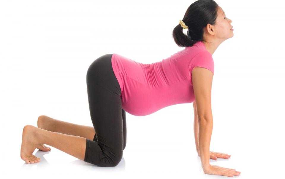 - Поза «кошка». Упражнение начинается с принятия положения стоя на четвереньках. Глубокий вдох – спина выгнута. Задержка дыхания на 3 с. Выдох. Глубокий вдох – прогибание спины. Задержка дыхания на 3 с. Повторение упражнения.