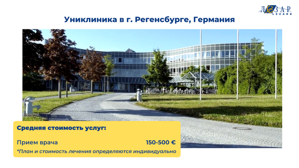 Университетская клиника в Регенсбурге представляет собой современный медицинский комплекс, включающий более 30 специализированных отделений и несколько научно-исследовательских институтов. С момента своего открытия в 1962 году она зарекомендовала себя как одно из ведущих медицинских учреждений.