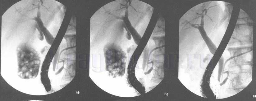 Если контрастная холецистограмма показывает сокращение органа более чем на треть, это свидетельствует о его гиперкинетическом состоянии. Такая рентген-картина может быть при закупорке протока.