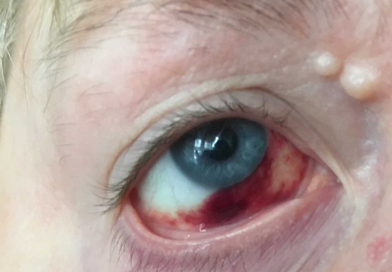 Кровоизлияние. Появляется на фоне изменения кровеносных сосудов, которые размещены между склерой и конъюнктивой. Кровоизлияние может случаться даже при незначительной травме. Иногда поражение охватывает часть глаза, в некоторых случаях оно застилает его полностью. Такое состояние не ухудшает зрение и проходит самостоятельно через несколько недель.