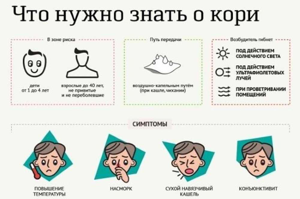 Вирусное заболевание, которое распространяется воздушно-капельным путем. Его симптомы — высокая температура, кашель, воспаление слизистых и сыпь. Взрослые обычно переносят заболевание тяжелее, чем дети.