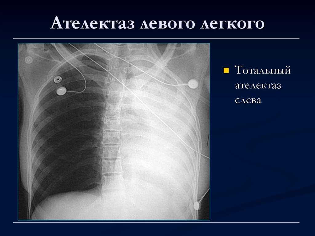 Внезапный одномоментный тотальный (субтотальный) ателектаз одного или двух легких, развившийся в результате травмы (попадание воздуха в грудную клетку) или во время сложных хирургических вмешательств практически во всех случаях заканчивается смертью сразу или в раннем послеоперационном периоде.