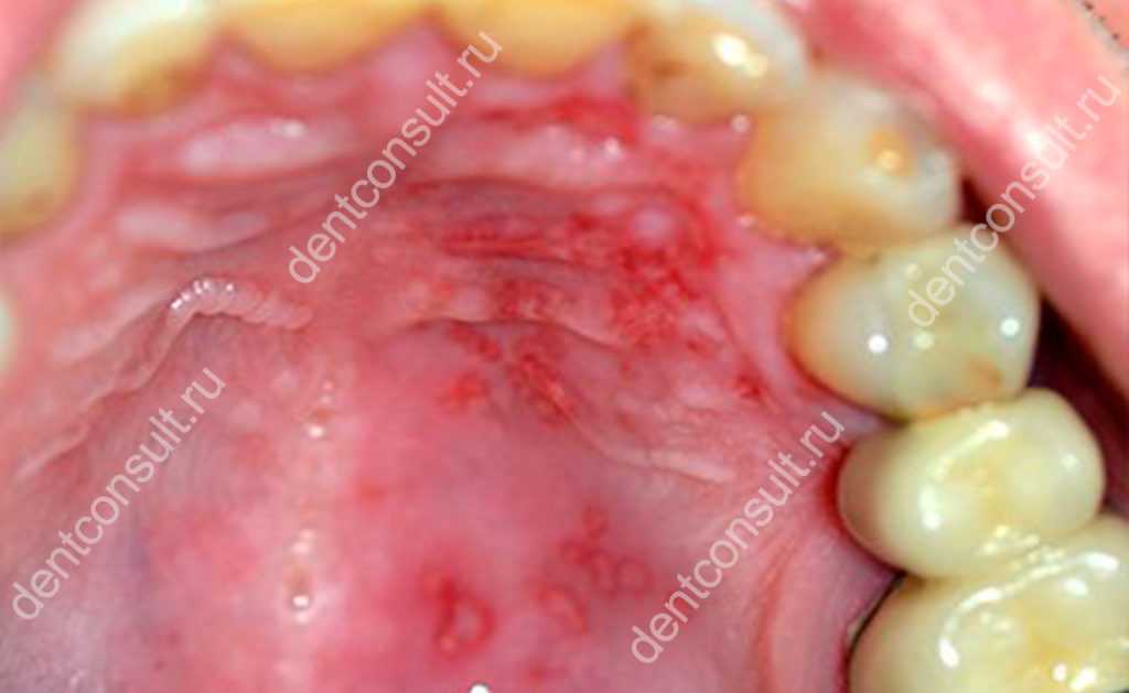 При этом часто возникает острый воспалительный процесс, иногда отягощенный нагноением. На слизистой проступают мелкие высыпания в виде изъязвлений, покрытых оболочкой. Больной может испытывать зуд и жжение, а также болезненные ощущения при механическом раздражении пораженных участков.