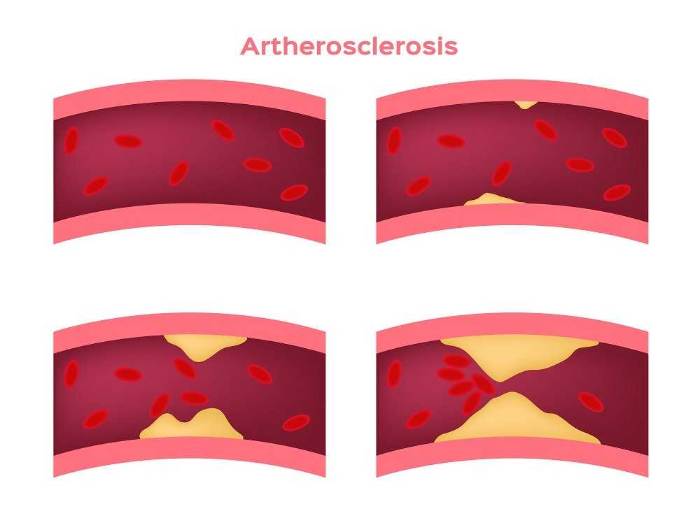 Наиболее часто данной болезни подвержены венечные сосуды, сонные артерии, сосуды головного мозга, брыжейки, почек, ног и рук. Первые симптомы болезни иногда выявляют у детей до 10 лет. У подобных больных иногда к 25 годам жировые пятна занимают практически 50% сосудистой поверхности. В первую очередь патологические изменения затрагивают внутренние слои сосудов. Каждая форма атеросклероза различается стадиями развития. Они полностью зависят от степени поражения, места образования скоплений, и других специфических особенностей болезни.