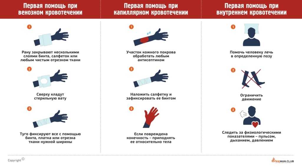 Доврачебная помощь при внутреннем кровотечении заключается в следующем: