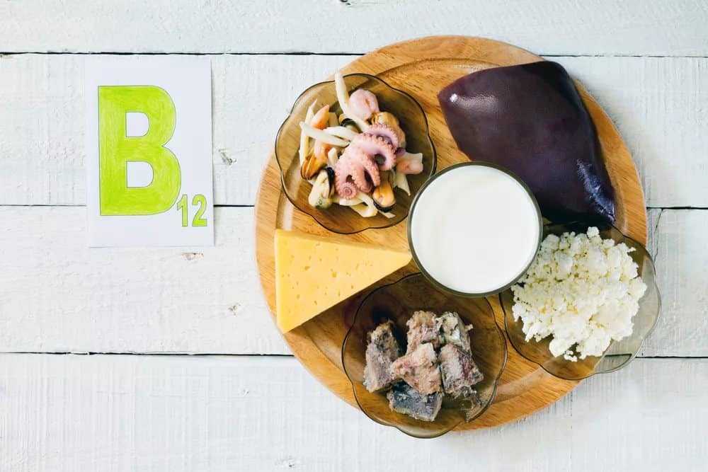 - дефицит витамина В12 в рационе. Это вещество содержится только в пище животного происхождения: мясе, молоке, рыбе, моллюсках. Ожидаемо чаще всего от нее страдают веганы. Организм человека способен создавать запасы витамина В12 на 2-4 года. Поэтому может пройти немало времени от момента изменения пищевых привычек до появления первых симптомов;