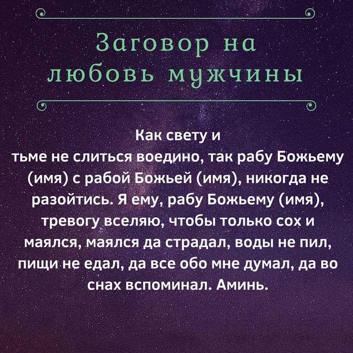 Привлечь мужчину в свою жизнь и создать с ним отношения — значит сотворить психическую связь, которая в несколько раз сильнее физической близости. Ее очень тяжело разрушить. Даже после расставания с человеком вы будете помнить его и постоянно думать о нем. Это помешает созданию новых продолжительных отношений — невероятно тяжело оставить в прошлом любовь. Чувствуете нечто похожее? Тогда вам будет полезно пройти ритуал очищения, и лишь полностью разрушив связь с бывшим возлюбленным, начинать новые отношения и применять заговор на привлечение мужчин.