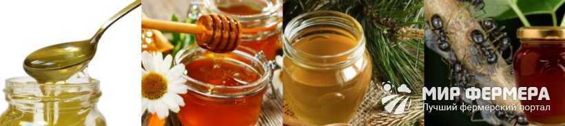 Рисунок 2. Виды падевого нектара (слева направо): липовый, акациевый, хвойный и фруктовый