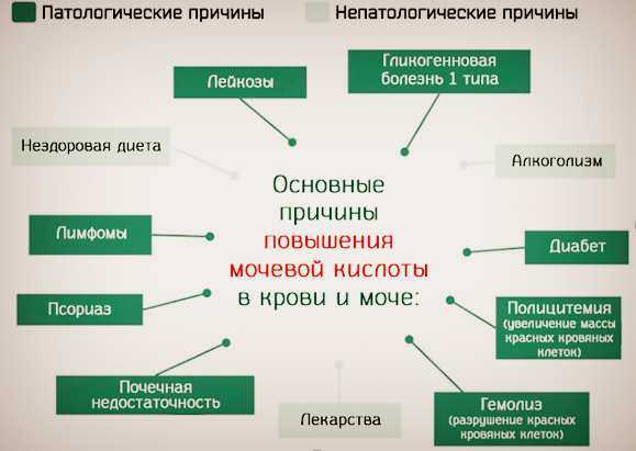 Рассмотрим основные причины повышения уровня мочевой кислоты в крови.