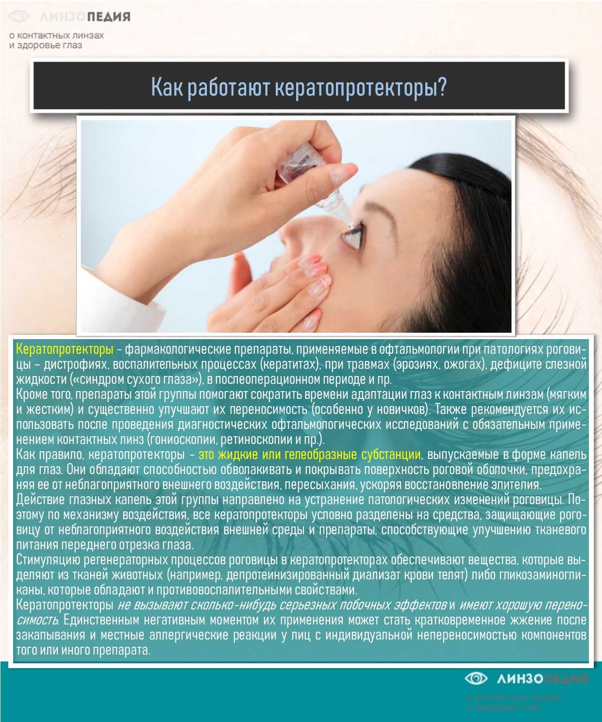 - Показанием к использованию кератопротектора является кератопатия.