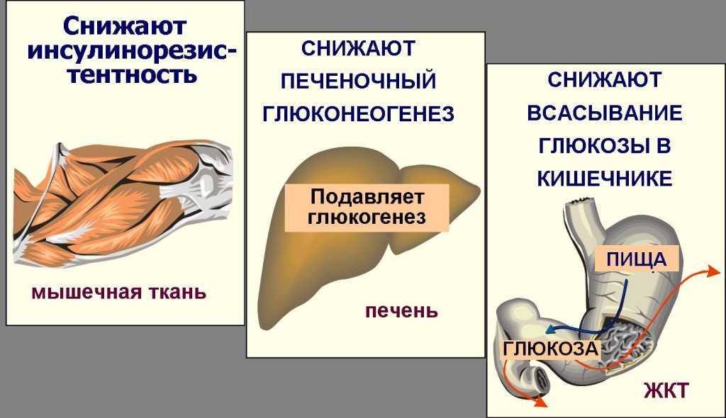 Самым важным действием метформина является подавление выработки глюкозы печенью.