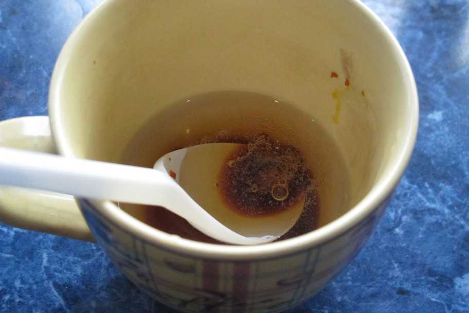 Насыпаем пластиковой ложкой в емкость с водой хлорное железо и постоянно перемешиваем.
