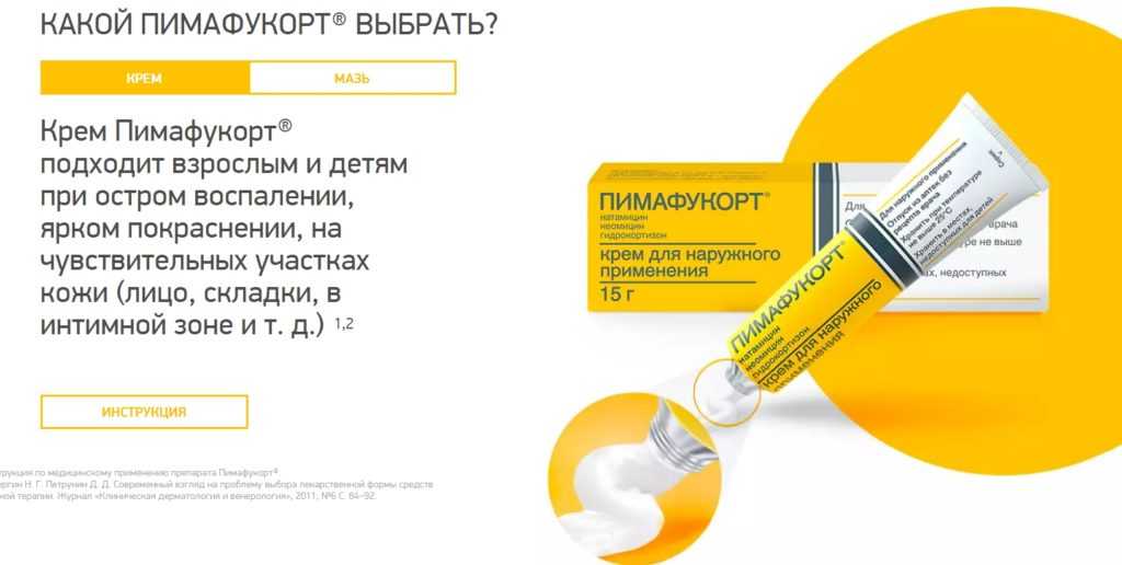 На помощь приходят комбинированные препараты. Они содержат в своем составе антибиотик, для уничтожения бактериальной инфекции, и антимикотик – препарат, действующий на грибки. Эффективным комбинированным препаратом является пимафукорт.