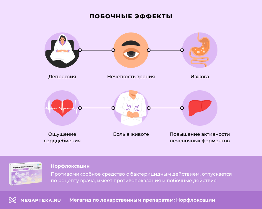 - Норфлоксацин имеет противопоказания и побочные действия.
