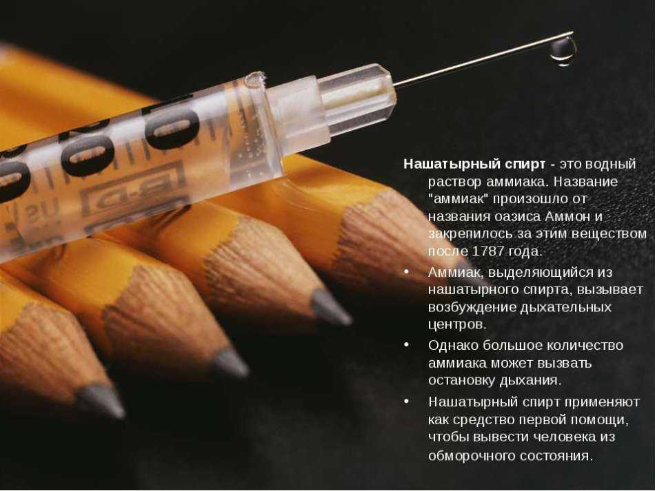 Чтобы отрезвить упавшего в обморок человека, надо на ватку нанести немного нашатырного спирта и поднести ее на расстояние 5 см от ноздрей. Слишком близко не надо подносить ватку с раствором, иначе можно вызвать едкими парами ожог слизистой носа. Если есть укус насекомого, то нужно делать примочки. При болях в мышцах и суставах подойдут растирания в виде линимента. Чтобы с помощью 10% гидроксида аммония вызвать рвоту, следует в 100 мл теплой воды добавить 5-10 капель средства и дать выпить больному. При мокром кашле показаны ингаляции, но не через ингалятор. Следует просто вдыхать раствор на вате.