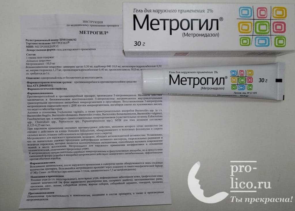 В случае угревой сыпи лечение может быть более длительным. Однако уже после первого применения выраженность негативных симптомов уменьшается. Средство Метрогил используется как основное средство для лечения прыщей, так и в комплексе с другими ЛС. Наносить гель нужно два раза в день на места, пораженные прыщами.